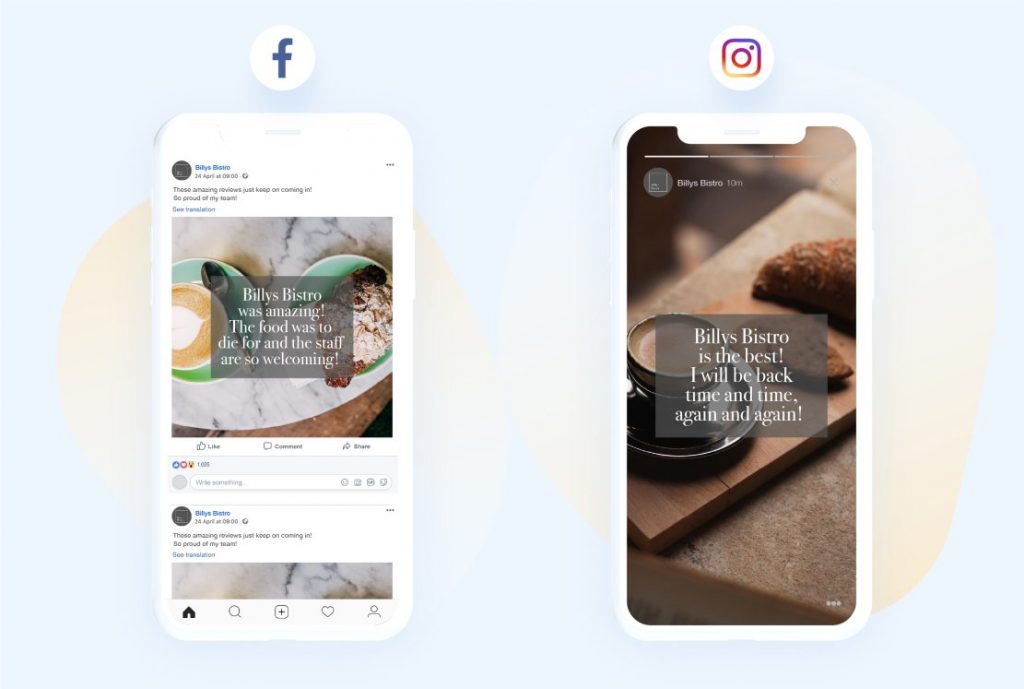 To accelerate this effect, you can share your “best of the best” reviews with your followers on social media. Typically, a quote over a contrasting background image is enough to do the job.